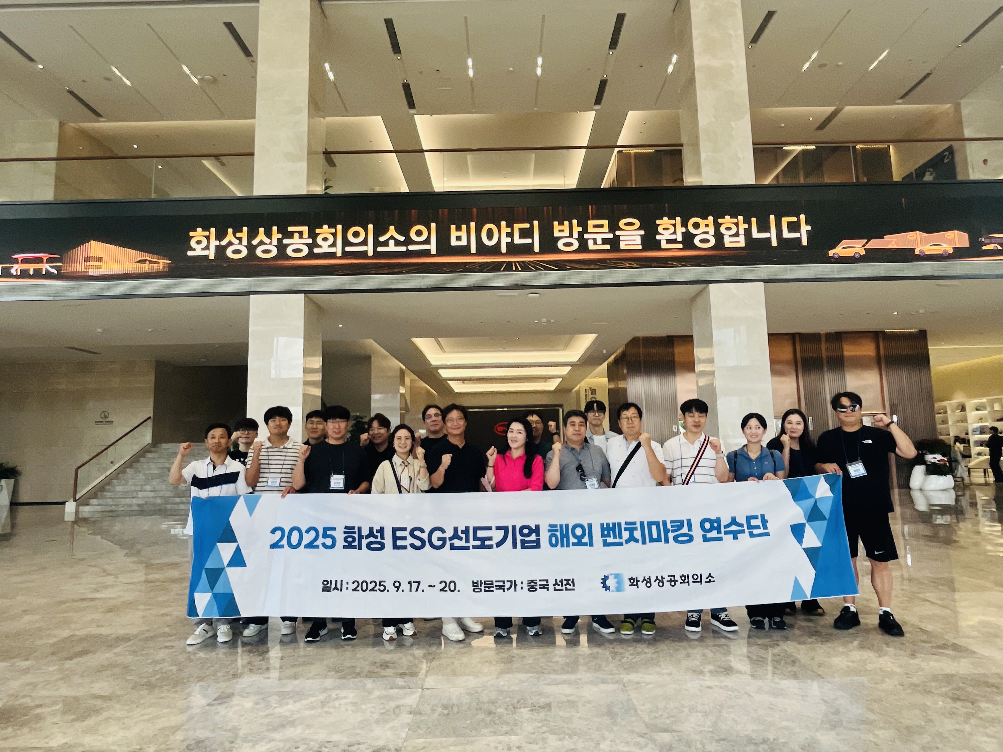화성상공회의소는 9월 17일부터 20일까지 3박 4일 일정으로 중국 선전에서 「화성ESG선도기업 해외벤치마킹 연수」를 개최했다. 이번 연수는 ESG경영을 선도적으로 추진하는 화성ESG실무협의회 회원사 15개 기업이 참여해 글로벌 혁신 현장을 체험하는 방식으로 진행됐다. ESG 경영 지원과 선진사례 학습, 그리고 회원 기업 간 네트워킹을 동시에 달성하는 것을 목표로 했다.