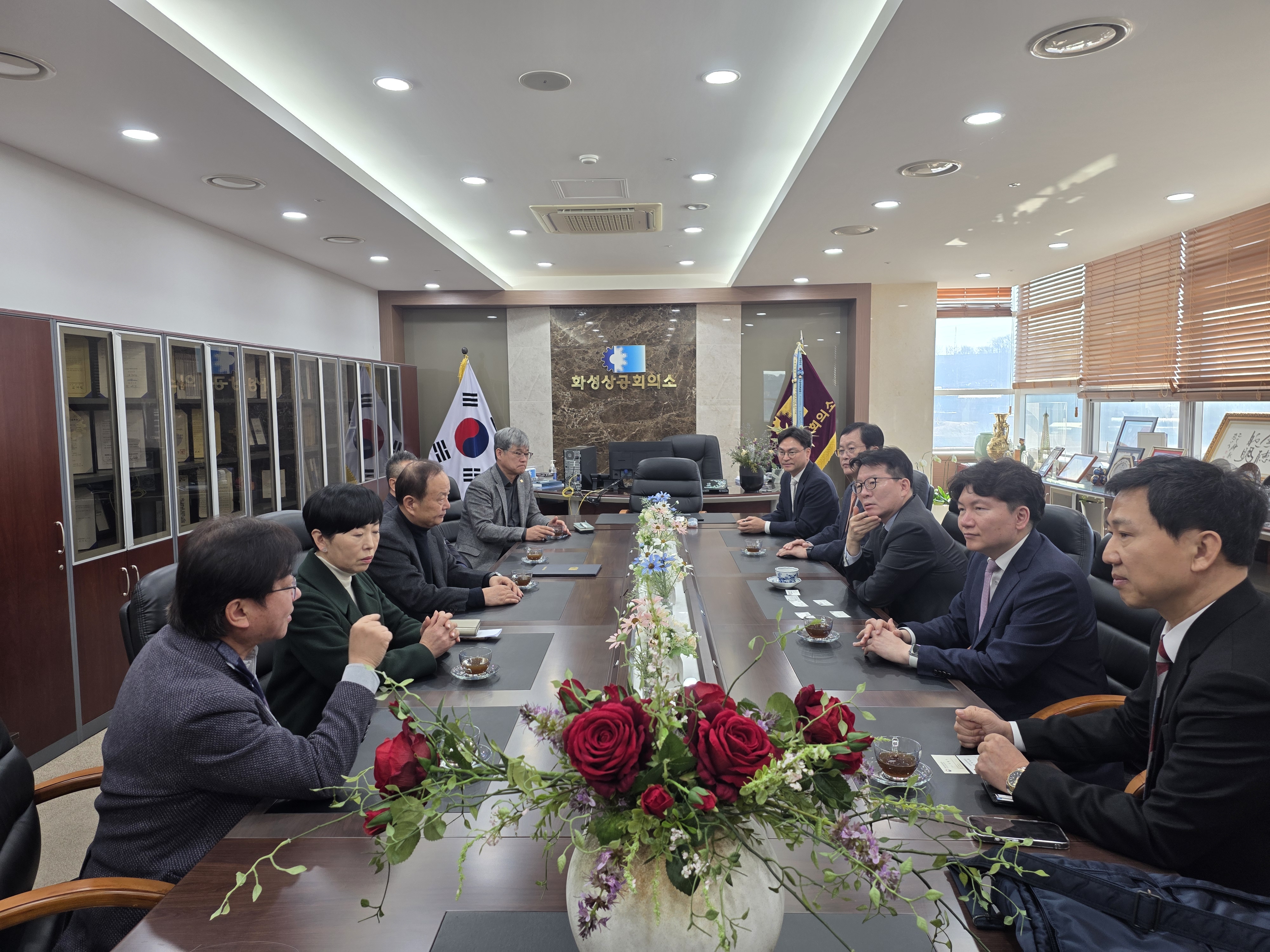 화성상공회의소(회장 안상교)는 25일 오전 11시, 상공회의소 3층 의원회의실에서 이승수 중부지방국세청장을 초청하여 지역 기업인들과의 간담회를 개최했다. 이번 간담회는 고물가·고금리 등 어려운 경제 상황 속에서 지역 기업들이 겪고 있는 세무 관련 애로사항을 청취하고, 실질적인 지원 방안을 모색하기 위해 마련되었다. 행사에는 이승수 중부지방국세청장을 비롯해 중부청 주요 간부들과 화성·동화세무서장, 그리고 안상교 화성상공회의소 회장을 포함한 지역 기업 대표 등 총 15명이 참석했다.