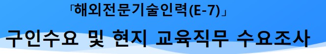 ☆ 해외전문기술인력(E-7)이 필요하신 기업들의 적극적인 참여 부탁드립니다 ☆ 1. 귀사의 무궁한 발전을 기원합니다. 2. 본 회의소는 산업통상부, 대한상의와 「육성형 해외전문기술인력 유치 사업」을 통해 기업을 대상으로 해외 전문기술인력(E-7-1)에 대한 구인 및 현지 교육직무 수요를 조사하고 있습니다. 3. 본 사업은 해외 우수 인재를 선발, 현지에서 직무 교육 후 기업과 매칭하기 위해 진행하는 것으로서, E7-1 인력 채용에 관심있는 기업들의 수요조사 회신을 요청드리오니 적극적인 참여 바랍니다. - 다 음 - 가. 사 업 명 :「육성형 해외 전문 기술인력 활용 지원사업」 (국 가) 베트남, 인도네시아 (분 야) 전기, 전자, 반도체, ICT, 화학 등 제조 기술 관련 전공자 (대 상) 관련 전공 학사 학위 이상 기술 인력, 석 박사급 전문인력 * 대한상의 주관 교육 후 E7-1비자로 입국 (이공계 분야 탑티어 현지대학 출신) (채용시기)‘26년 10월부터 순차적으로 입국예정 (주 관) 산업통상부 고용노동부 대한상공회의소 |