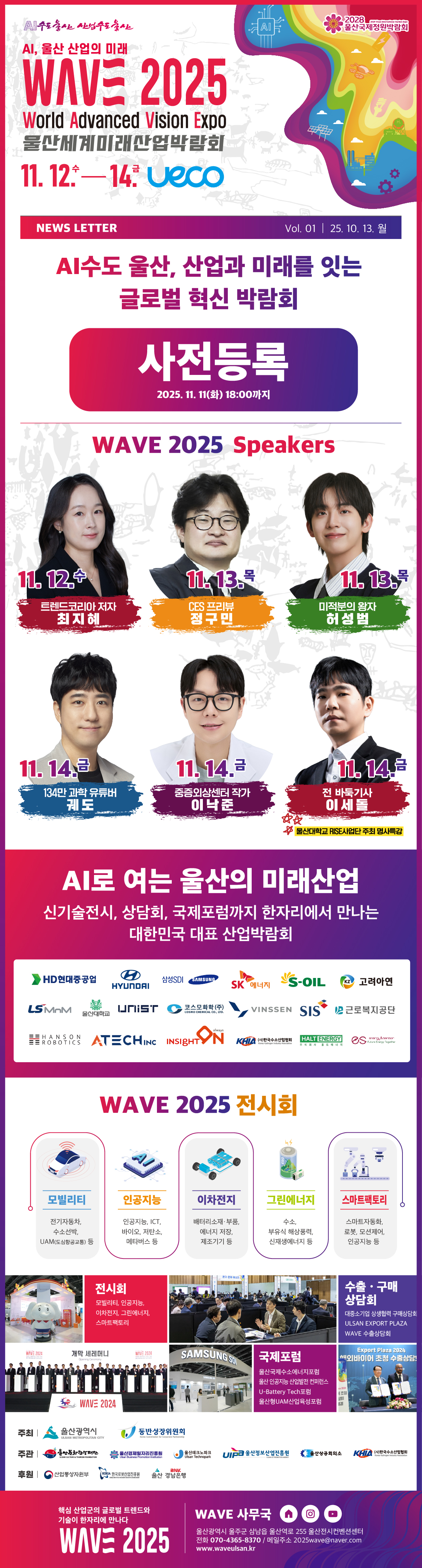 | ‒ | WAVE 2025(울산세계미래산업박람회) 홍보 협조 요청 |