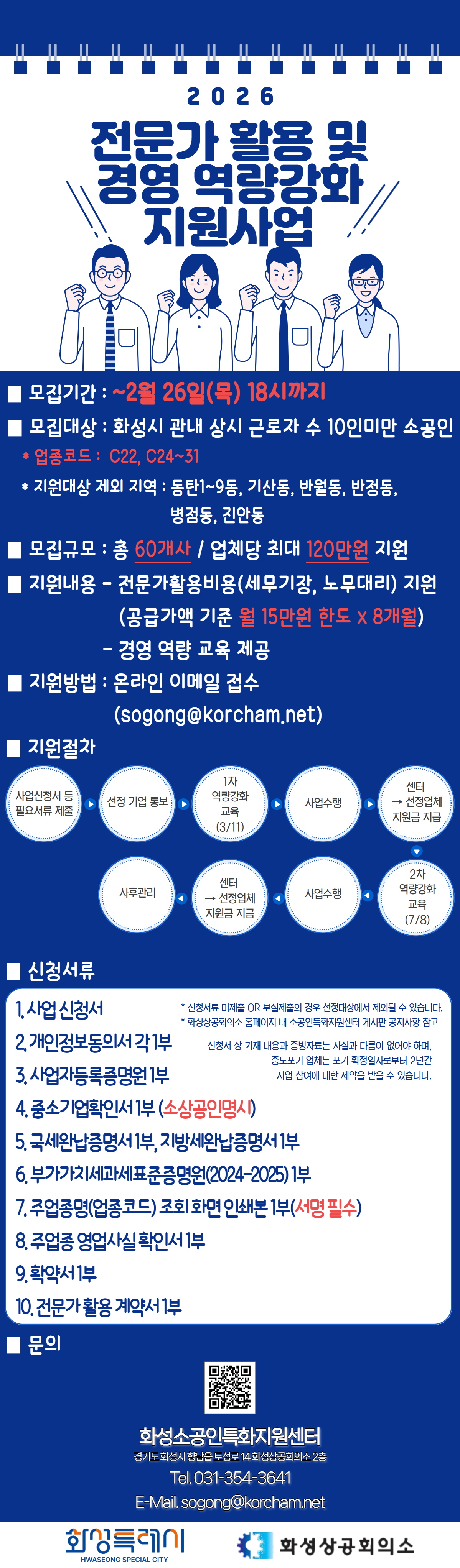 ※모집기간이 3월 3일(화) 18시까지로 연장되었습니다. 2026년 소공인 전문가활용 및 경영 역량강화 지원사업 모집안내 - 소공인 전문가활용비용(세무기장비용, 노무대리비용 등) 지원 및 경영 역량강화교육 제공