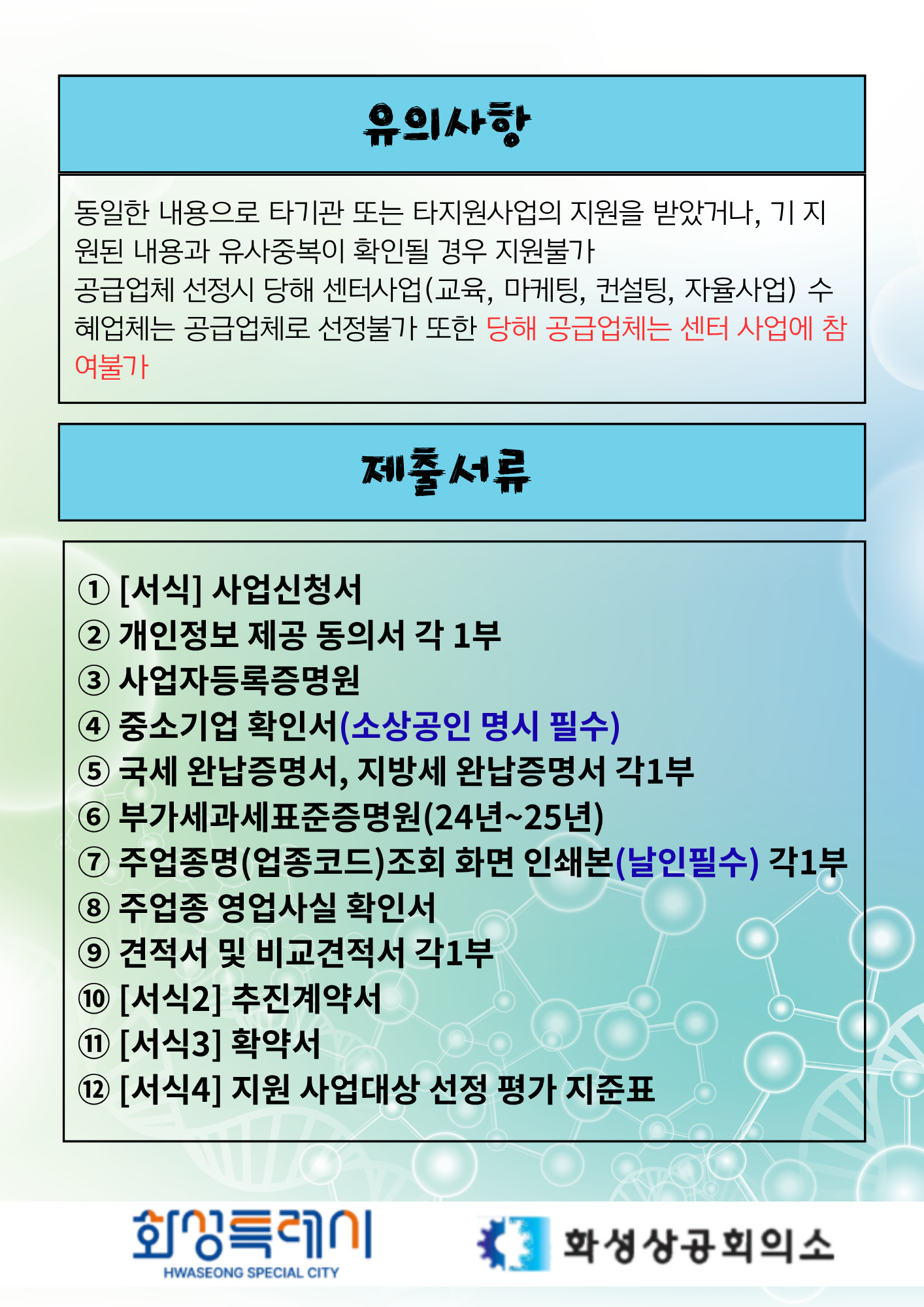 ★ 24년부터 시제품 개발 지원사업에 집적지 특성화 지원 항목 추가로 인하여 추진계획서 내 화성소공인복합지원센터 또는 수원대 메이커스페이스의 장비를 이용한 개발 방안이 필수 포함되어야 합니다. 참고 부탁드립니다.