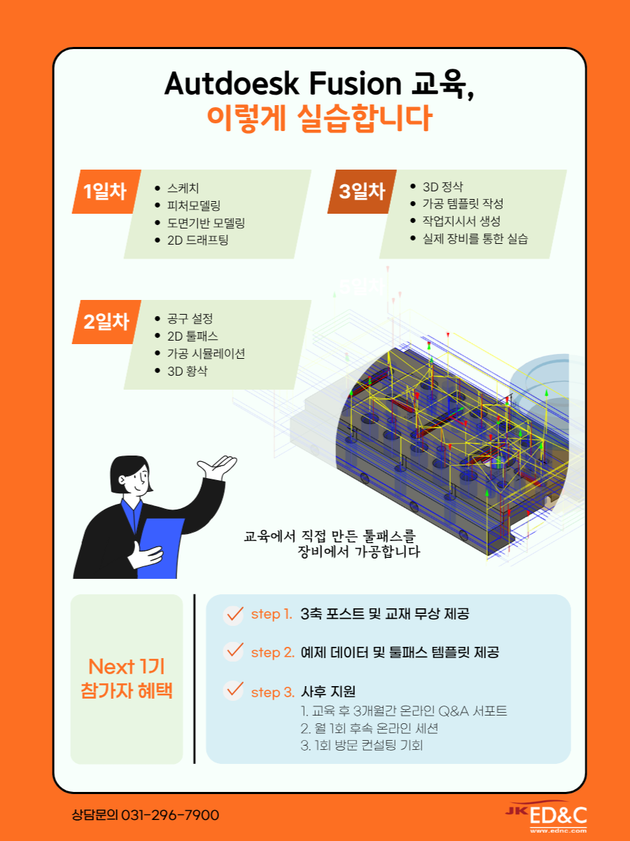 현장 제조 실무에 바로 적용 가능한 Fusion CAD/CAM 오프라인 장비 실무 교육 안내입니다.