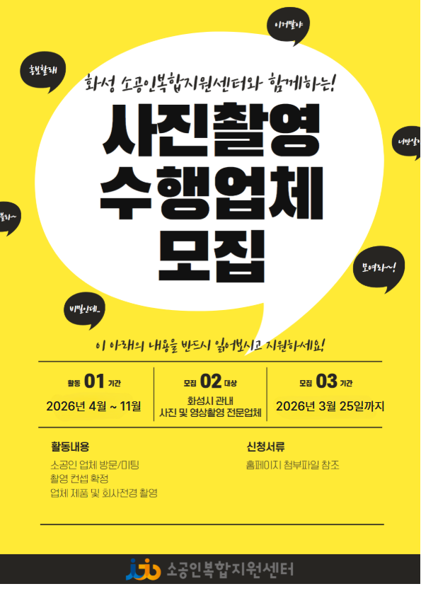 | 제목 | [마감] 2026년 마케팅 이미지 촬영 지원사업 수행업체 모집 안내 | ||