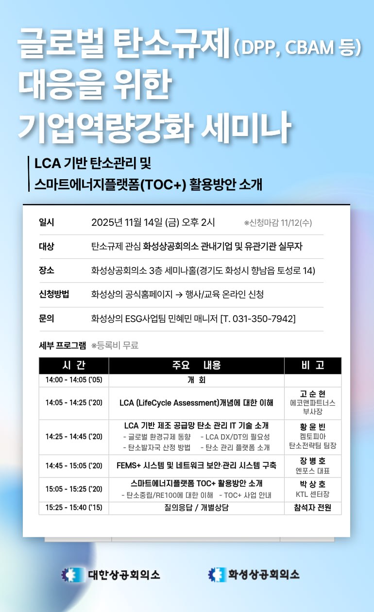 제목 | [모집]「글로벌 탄소규제 대응을 위한 기업역량강화 세미나」개최 | ||||||